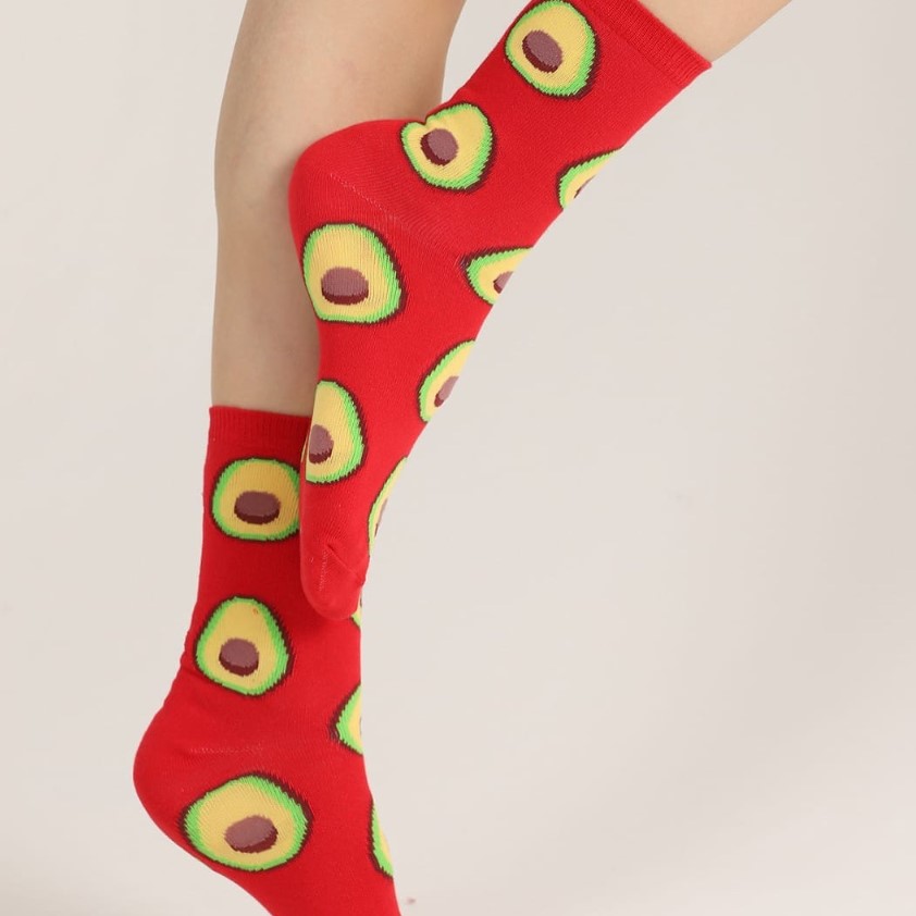 Avokado desenli çoraplarımızla günlük stilini renklendir! Hem rahat hem de şık bir seçenek arıyorsan, bu eğlenceli desen tam sana göre. Doğanın en sevilen meyvesi avokado, artık ayaklarında! Renkli ve neşeli tasarımıyla her outfitine uyum sağlayacak bu çoraplar, gardırobunun vazgeçilmezi olacak. Hemen satın al, tarzını tamamla!